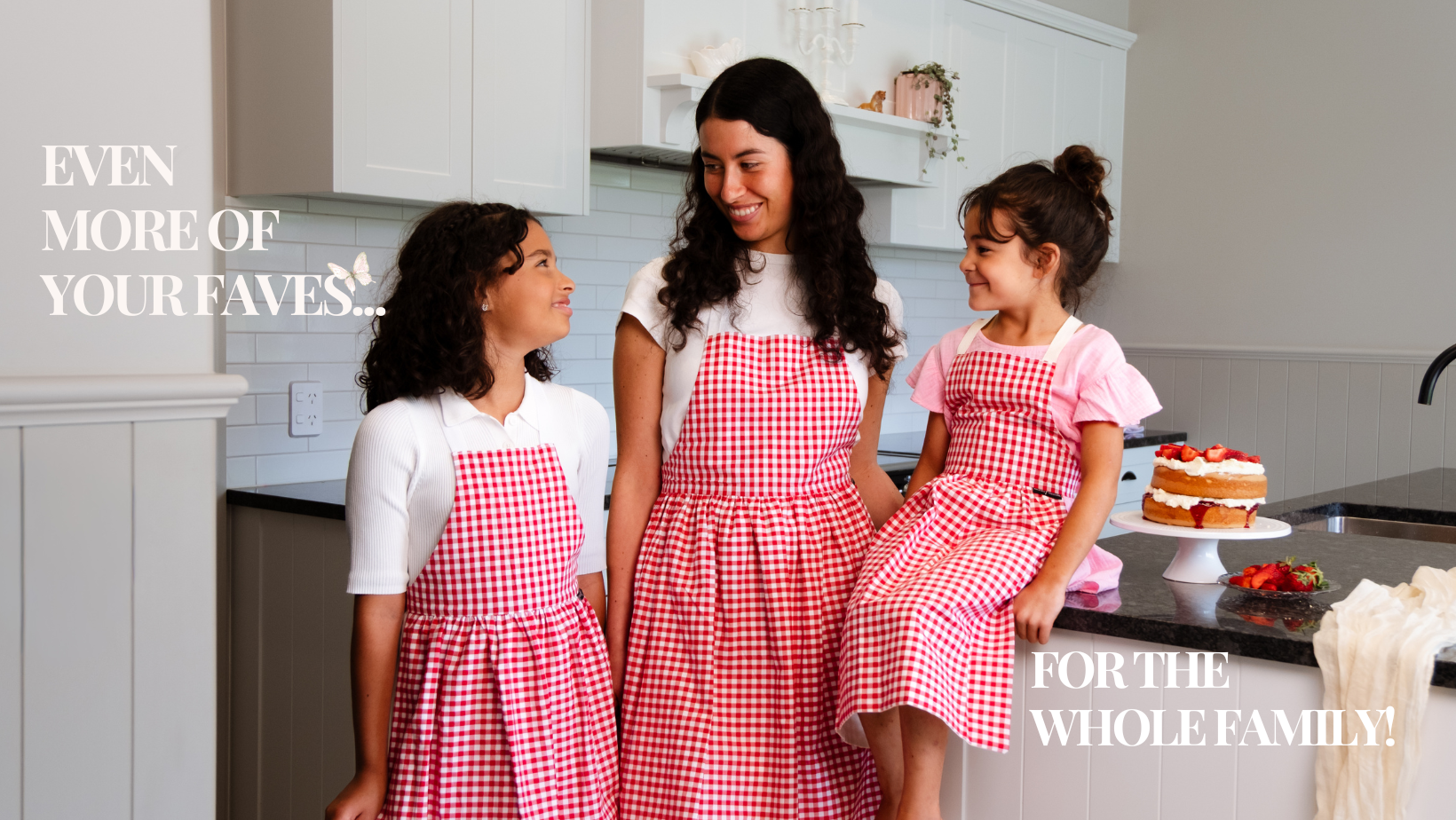 Every apron tells a story! Create yours with custom sizing, fabrics, colours, and embroidery, you can design the perfect gift for a loved one or a masterpiece just for yourself.
