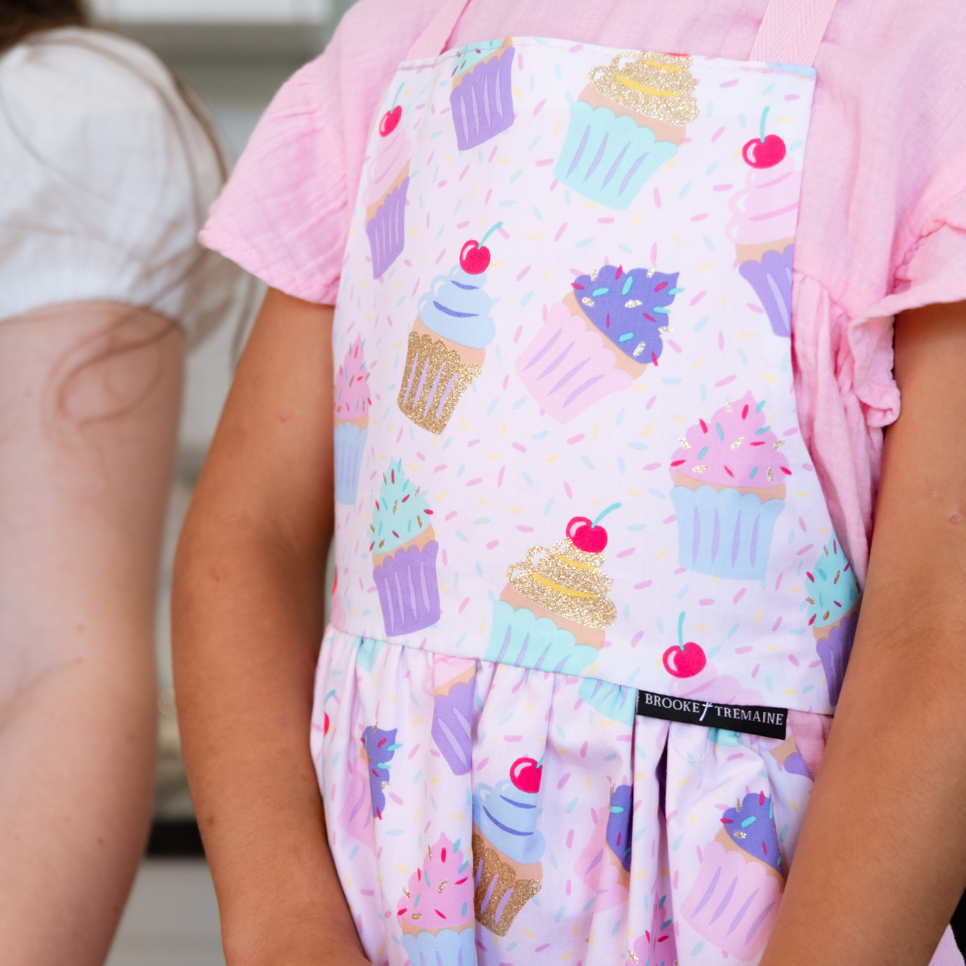 Covered in cupcakes and sparkles, this apron adds a fun, simmer to every baking moment. Sweet, bright, and perfect for little creators. Just irresistibly cute!🧁✨