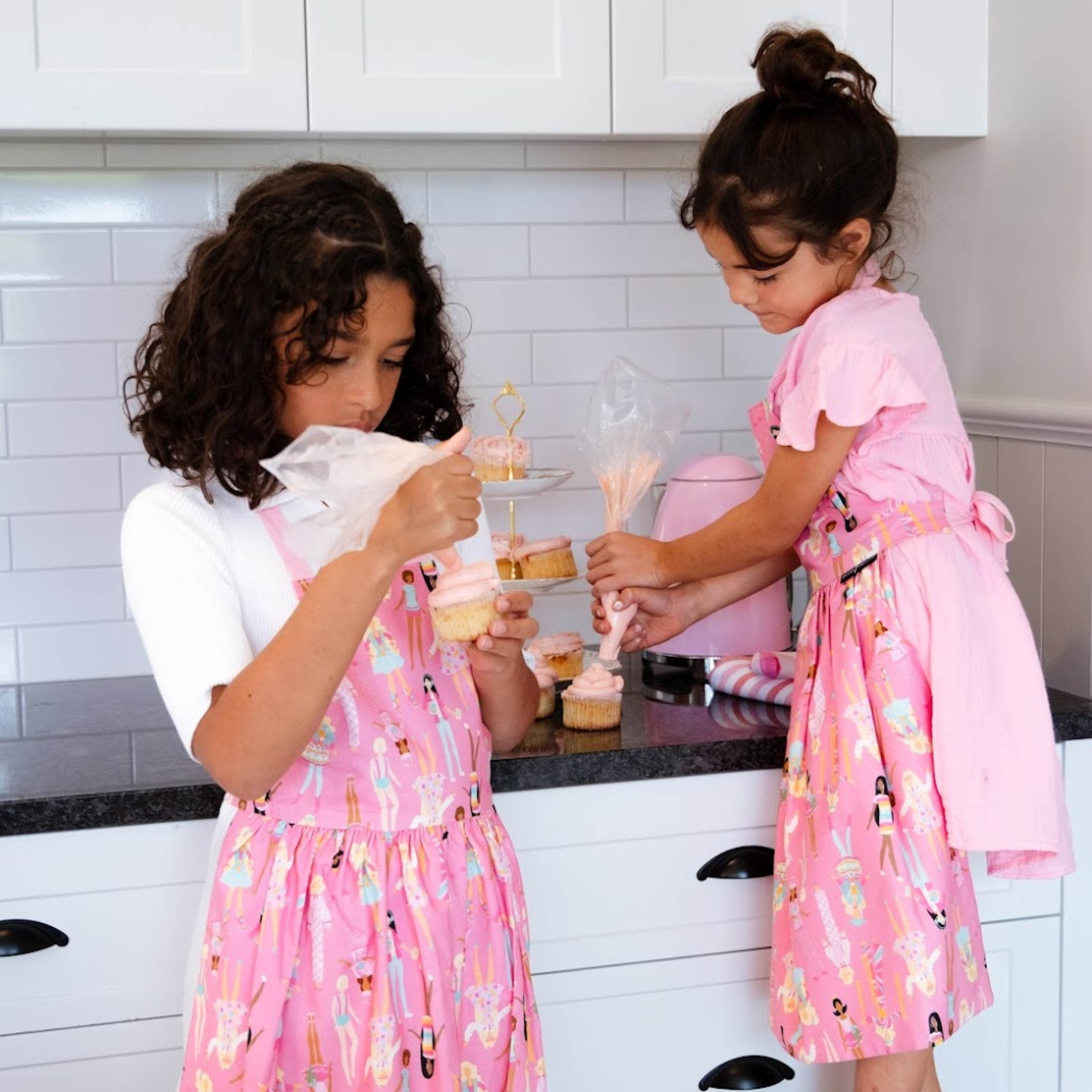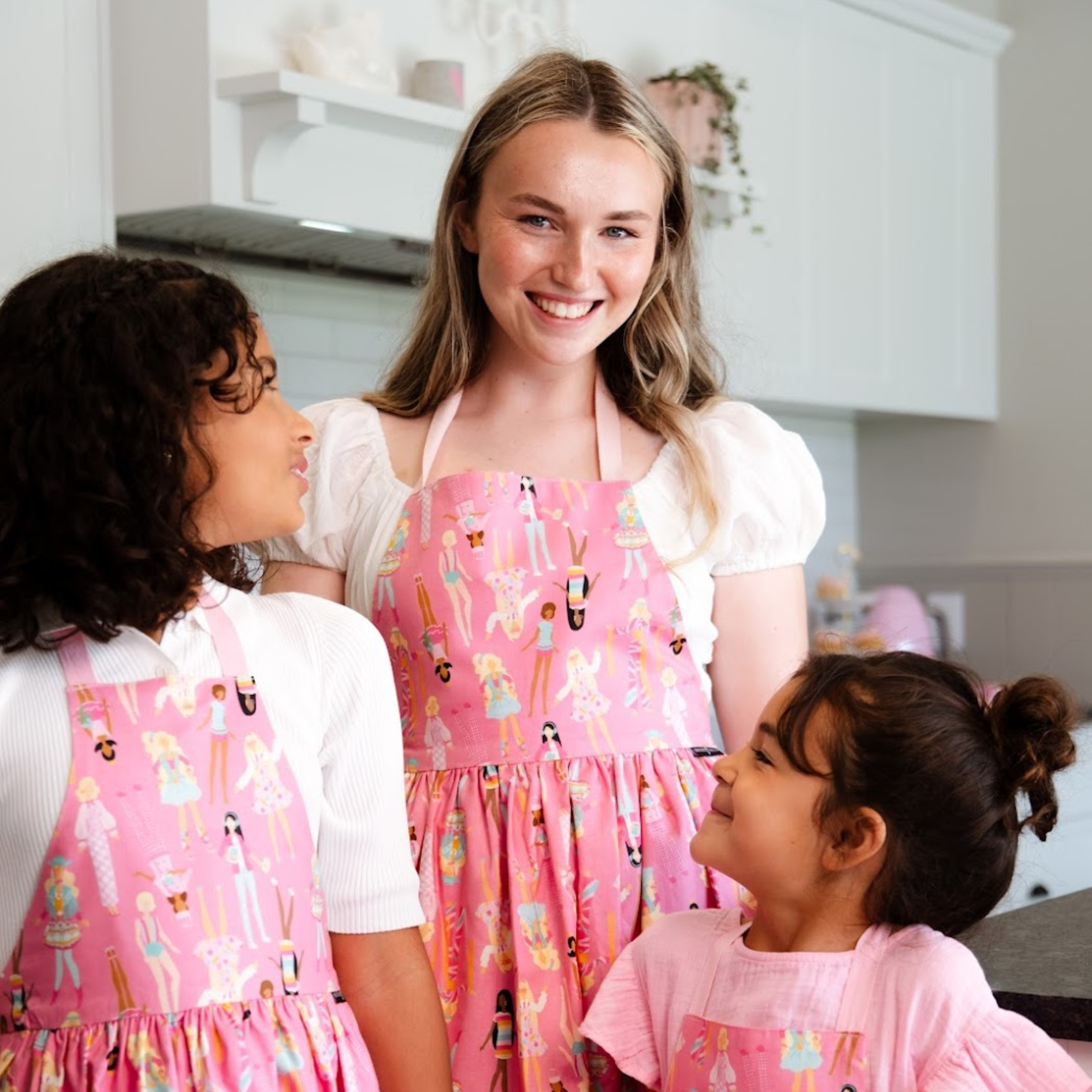 Xanthe is a children's 12 and is wearing the Miss Apron